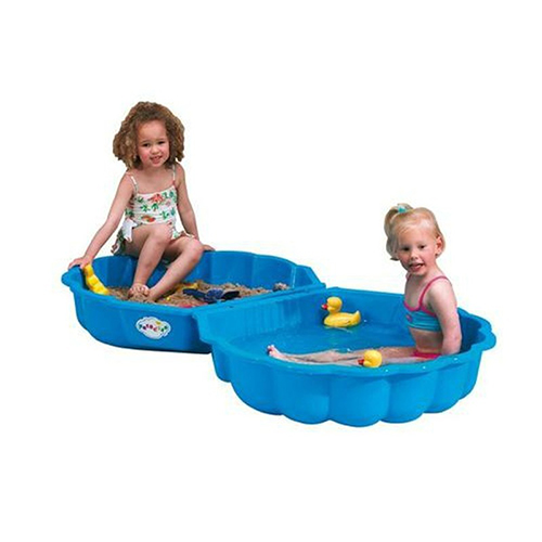 Яркая пластиковая песочница в форме РАКУШКИ состоит из 2 деталей и может быть также использована для организации небольшого бассейна для малыша.