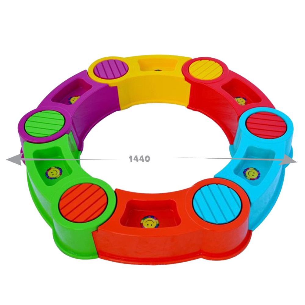 Эта красочная песочница Радуга составляется из отдельных деталей, удобна для использования в любом месте и любое время года. Летом собираем ее на улице, насыпаем песок и играем в куличики. Зимой ставим песочницу дома и насыпаем в нее пластиковые шарики (в комплект не входят) или песочек, подстелив пленку (в комплект не входит). Игра продолжается!