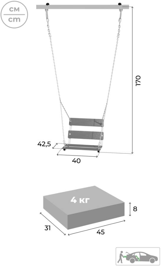 Толщина металла качельной балки: 3,0 мм