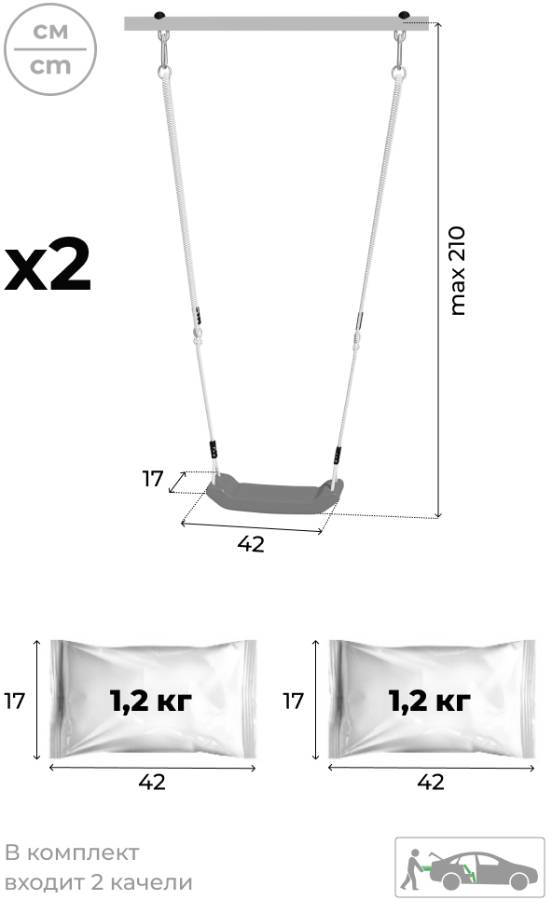 - Комплектация: каркас для качелей, качели пластиковые