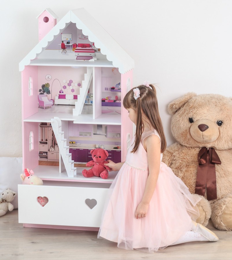 Кукольный домик Луиза - это оригинальный кукольный дом с просторным ящиком для игрушек снизу.