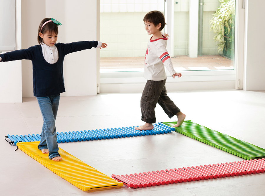 Коврик ребристый рекомендуется для занятий с детьми от 2 лет. " Размер одной части: 148см х 36 см х 3 см. Всего - 4 части. " Ребристый коврик состоит из пластиковых палочек. " Каждая часть коврика окрашена в один из 4 цветов: - красный, - желтый, - синий, - зеленый. Коврик ребристый используется на физкультурных занятиях: - для упражнений в равновесии, - для укрепления мышц стопы, - для формирования сводов стопы при ходьбе; - для укрепления мышц спины в ползании; - для расслабления. Коврик ребристый способствует: " развитию тактильных ощущений, " массажу стопы, " укреплению нервной системы ребенка. Изготовленный из пластиковых палочек, рифленый дизайн Rungs Way может стимулировать нервную систему и улучшать осязание. Технические характеристики Компоненты: 4 шт. (красный х 1, желтый х 1, синий х 1, зеленый х 1) Размер игрушки одна штука 148х36х3h см Материалы включают в себя: высококачественный пластик Rungs Way имеет уникальный дизайн, ступеньки слегка сдвигаются, когда на них наступают. Присоски прикрепляют беговую дорожку к полу для устойчивости. Максимальная загрузка 60 кг Размер упаковки 38х32х56 см Вес 8,5 кг, без упаковки 7 кг