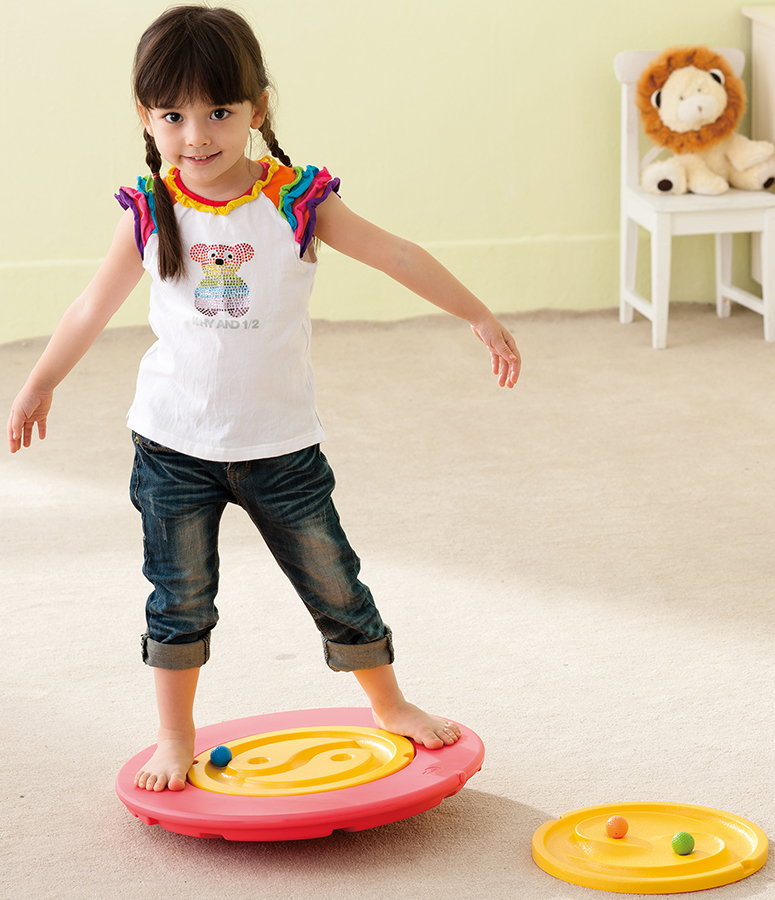 Балансир рекомендуется для занятий с детьми от 3 лет. " Диаметр балансира - 48 см. " Балансир состоит из: - напольного диска; - двух съемных дисков-вкладышей; - двух шариков. Балансир используется: - для упражнений в равновесии, - для укрепления мышц стопы, спины, ног; - для укрепления мышц рук; - для выработки чувства двигательной активности. Доска для баланса тай-чи получила свое название от узора тай-чи, нанесенного на диски. Катание мяча по дорожке помогает улучшить баланс тела и мышцы нижней части тела. Диски взаимозаменяемы и могут воспроизводиться отдельно, без базы. Это упражнение помогает улучшить зрительно-моторную координацию, поэтому игроки получают вариации только в одном подходе. Основание доски служит балансировочной доской. Дети могут стоять на нем, катая мяч по дорожке. Два сменных диска могут быть добавлены для большего удовольствия и сложности. Сменные диски также можно использовать по отдельности в качестве портативных игрушек для тренировки зрительно-моторной координации. Максимальная нагрузка 60 кг Составные части: Базовая доска (рыбный узор) x 1 - Ø 48 x 7 (В) см Сменный диск x 1 (узор 2D Tai Chi, рисунок 3D Tai Chi) Мяч х 3 Материалы включают в себя: высококачественный пластик Страна происхождения: Тайвань Предупреждение: Маленькие шарики в этом продукте представляют опасность удушья. Не для детей младше 3 лет. Используйте под наблюдением взрослых. Балансир способствует развитию: " координации движений, " мышц спины, стопы, ног, " крупной моторики, " концентрации взгляда на движущемся предмете, " глазных мышц, " ловкости. Балансир укрепляет вестибулярный аппарат ребенка.