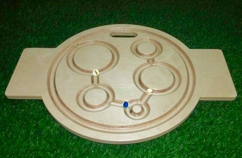 Балансировочная доска-лабиринт № 4 - это тренажер для ребенка и взрослого, способствующий развитию вестибулярного аппарата, физической силы, равновесия, координации движений. Нужно суметь не просто удержаться на доске, но и перемещать шарик по лабиринту, раскачиваясь на доске, наклоняя ее в разные стороны. Таким образом, тренируется еще зрение и внимательность. Занятия будут интересны и детям и взрослым, это отличная терапия для опорно-двигательного аппарата. Доска выполнена из натурального материала, удобна в эксплуатации и абсолютно безопасна для детей.