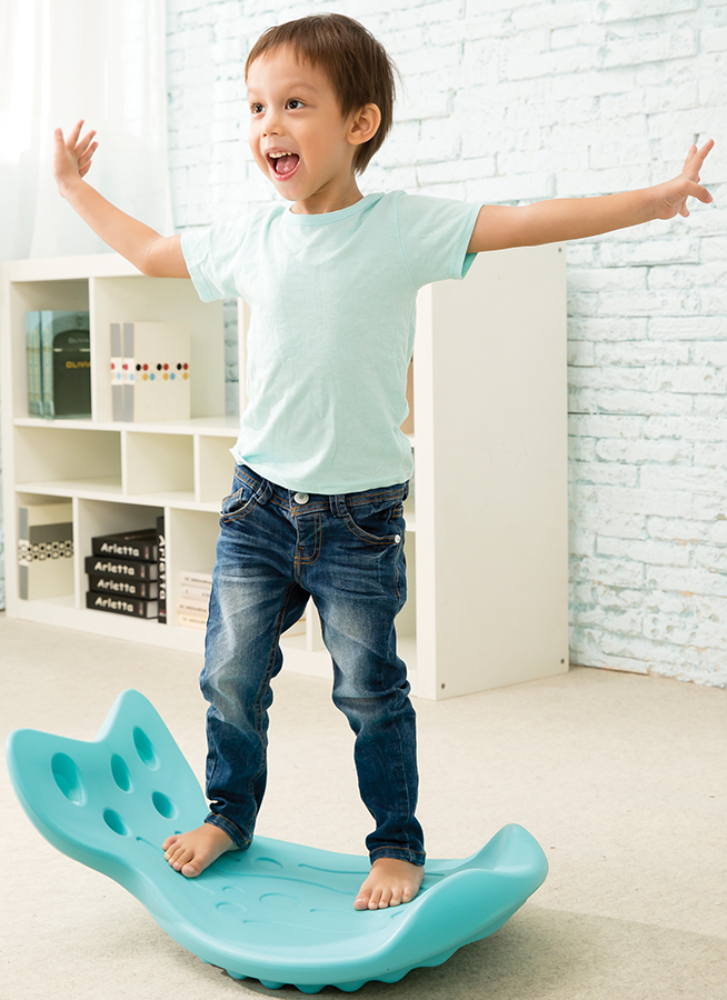 Качайтесь, балансируйте, растягивайтесь и играйте — получайте удовольствие от Weplay Whally Board! Вдохновленная формой прыгающей рыбы, поверхность текстурирована волнами и пузырьками, которые стимулируют ступни и руки. Эта балансировочная доска эргономично разработана для того, чтобы дети могли сидеть или стоять на ней во время веселой игры-качалки. Рифленый край на задней панели предназначен для предотвращения защемления пальцев. Дизайн Whally Board был вдохновлен рыбой, выпрыгивающей из воды. Волнистые и пузырьковые узоры на текстурированной поверхности стимулируют ступни и руки, а также предотвращают скольжение детей. Балансировочная доска предназначена для обеспечения оптимального комфорта и предотвращения стресса или травм, пока дети качаются на ней. Доска Whally предназначена для того, чтобы дети могли сидеть или стоять на ней во время игры. Рифленый край задней части предназначен для предотвращения травм от защемления пальцев. Трехмерный волнистый дизайн предлагает тактильные ощущения и слуховую обратную связь, делая занятия более сложными. Игровая ценность Верхняя сторона доски Whally Board позволяет детям тренировать крупную моторику, например равновесие и координацию. Это также способствует силе ядра. Трехмерное волнистое основание обеспечивает тактильную стимуляцию стоп и рук во время игры. Раскачивание в стороны или назад и вперед обеспечивает сенсорную стимуляцию и способствует вестибулярному входу. Доски Whally Boards можно использовать в качестве творческого маршрута для развития у детей адаптивных моторных и защитных навыков. Возраст от 1,5 лет Размер игрушки 62х39,5х17h см Материалы включают в себя: высококачественный пластик Максимальная загрузка 60 кг Вес 2 кг, без упаковки 1,5 кг