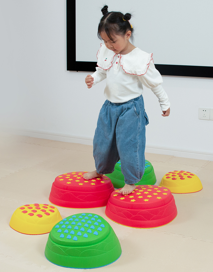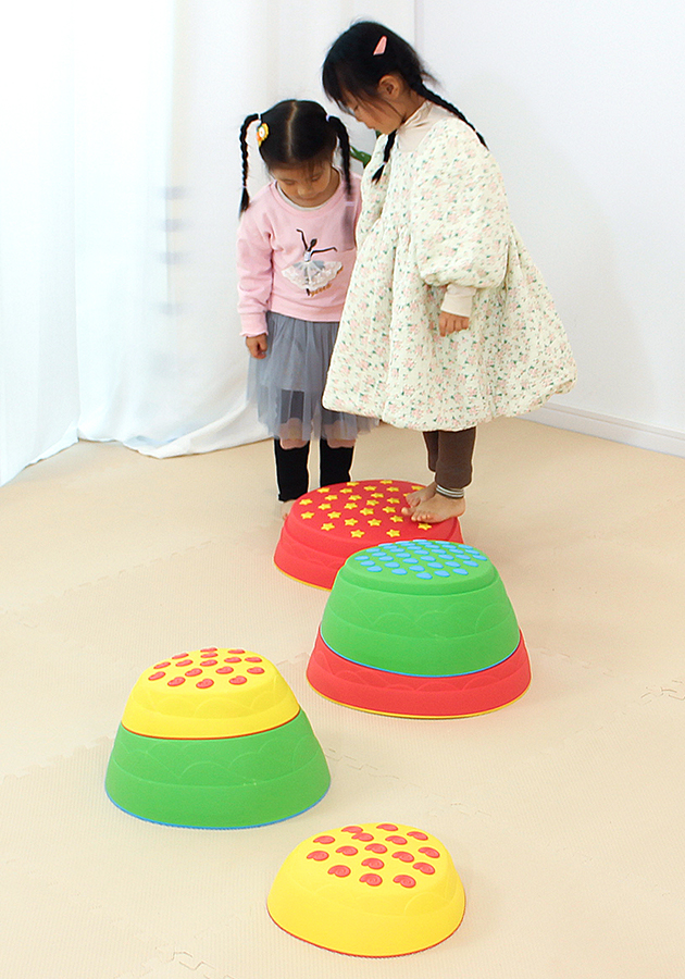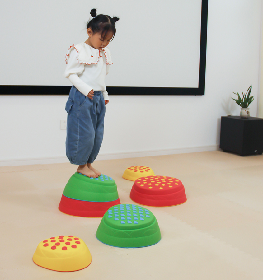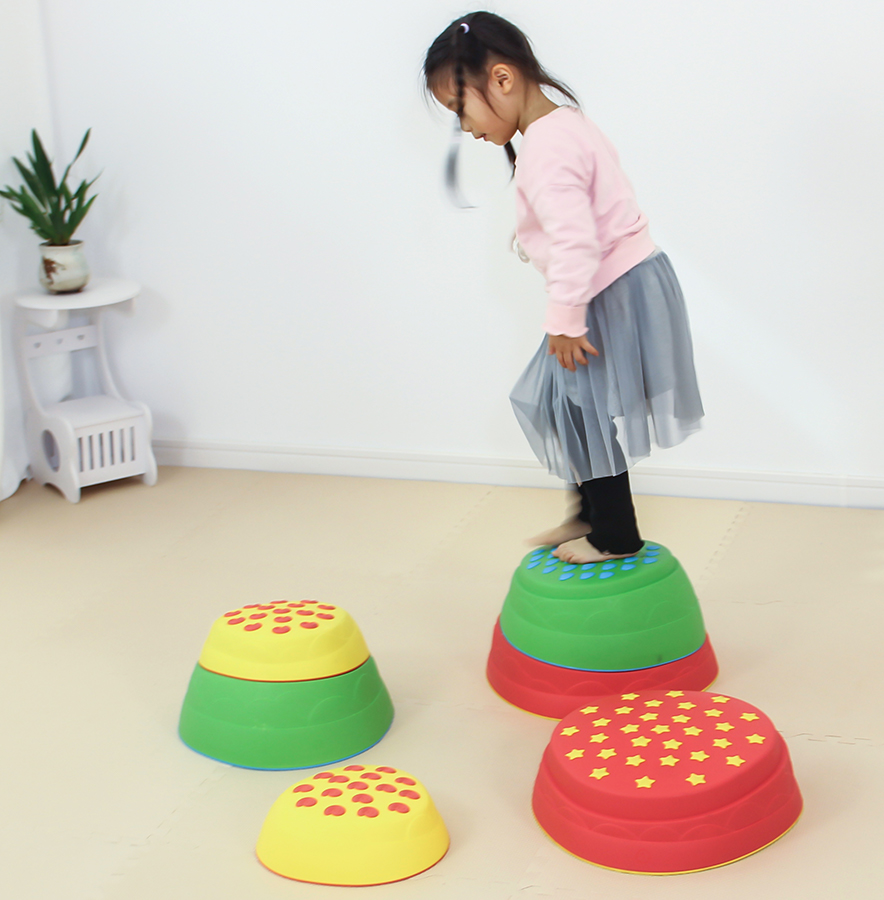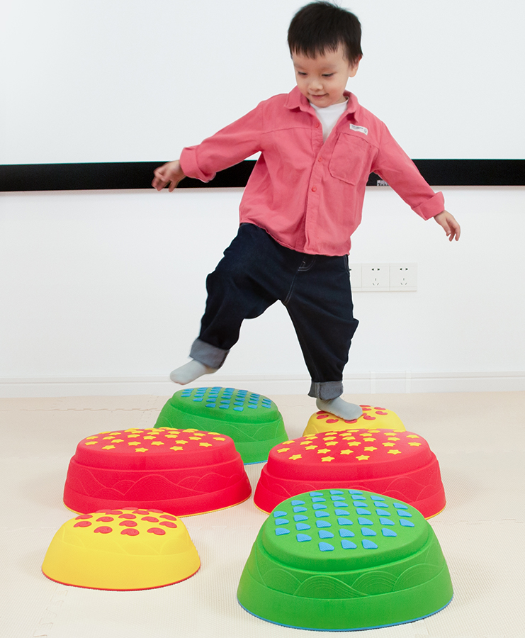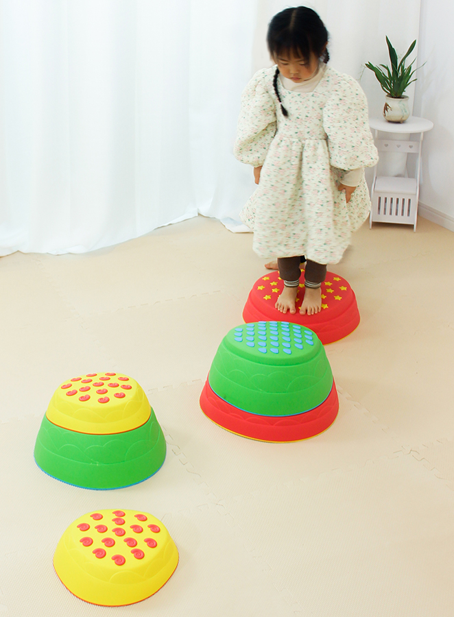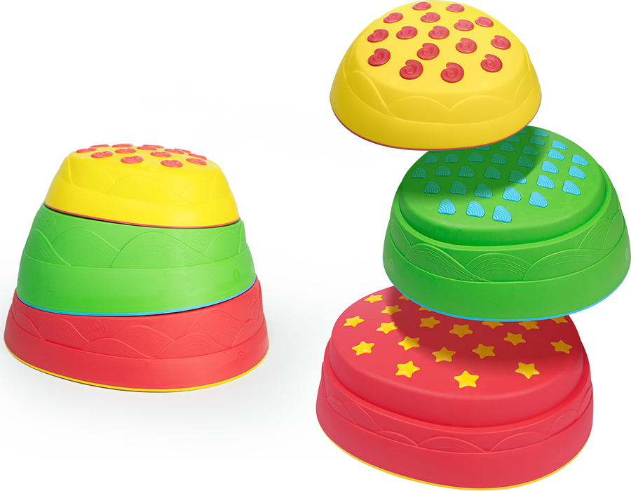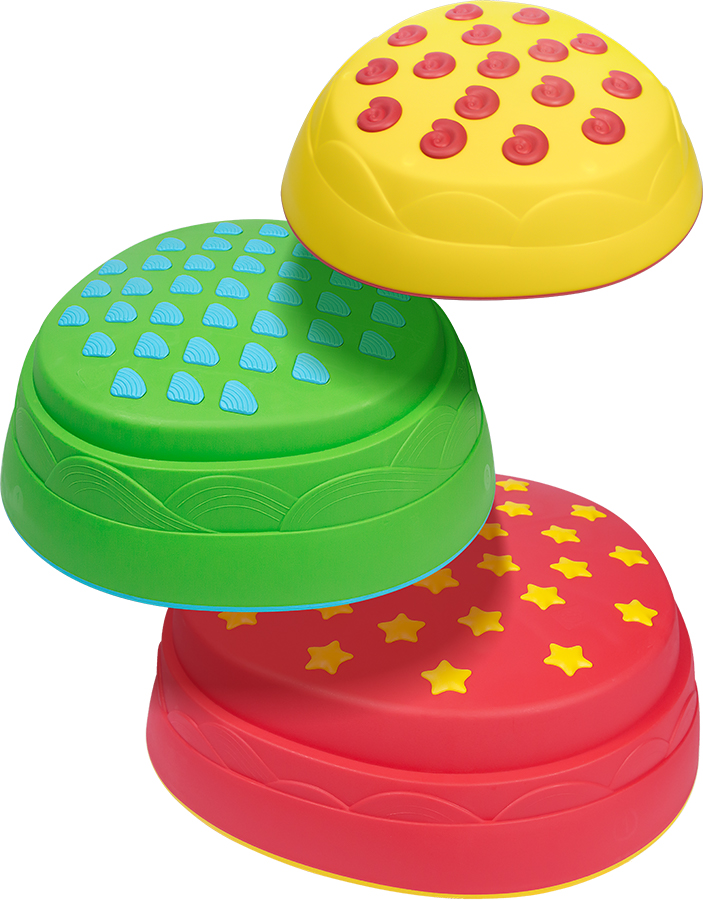 Спортивный инвентарь Тактильные камни состоит из 6 "камешков" в 3-х размерах и 3-х цветах, выполненных из прочного пластика с ребристой поверхностью, что помогает избежать скольжения