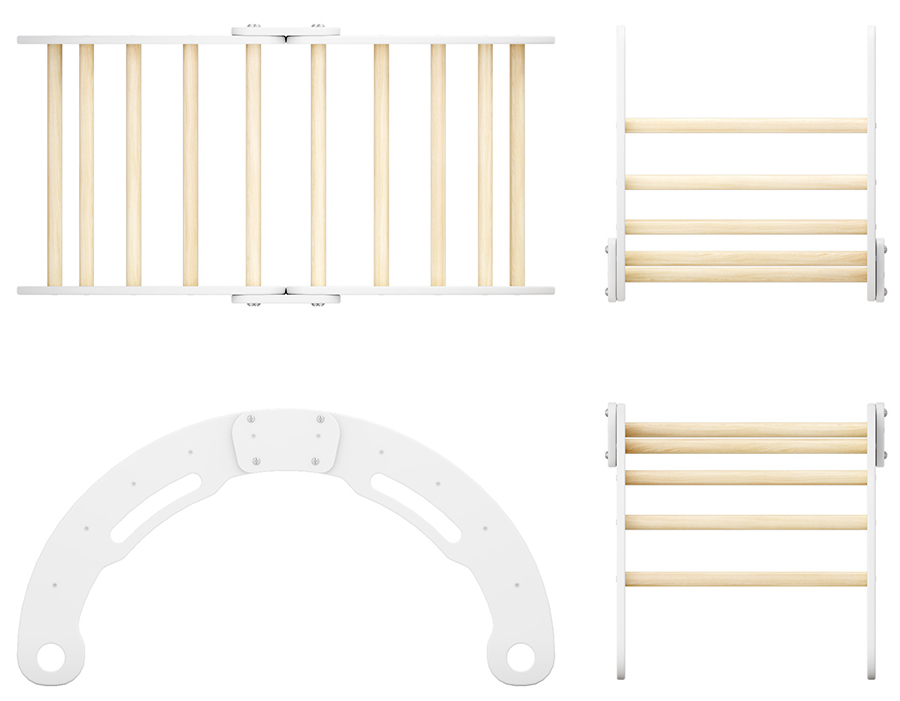 Арка-качалка Eco 5 Пиклера — универсальный компактный тренажер для развития координации и укрепления мышц ребенка. Изделие выполнено в форме изогнутой лестницы, которую можно перевернуть и использовать в двух вариациях: