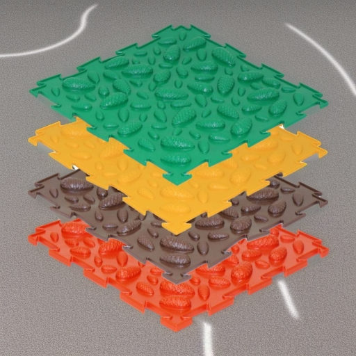 Набор модульных ковриков Шишки имеет поверхность с чередующимися между собой большими и маленькими шишками. Модульный коврик создает эффект ходьбы по природным неровным поверхностям. Эта продукция заинтересует как родителей, так и представителей дошкольных учреждений.