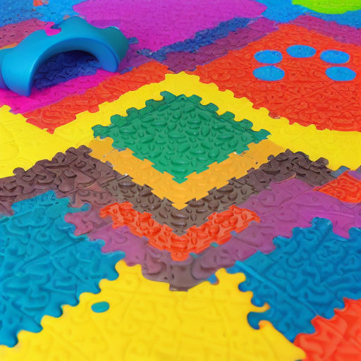 - между собой модули крепятся по принципу детского конструктора «паззл», и ребенок дошкольного возраста вполне сможет собрать коврик сам, совмещая плитки разных цветов по своему желанию