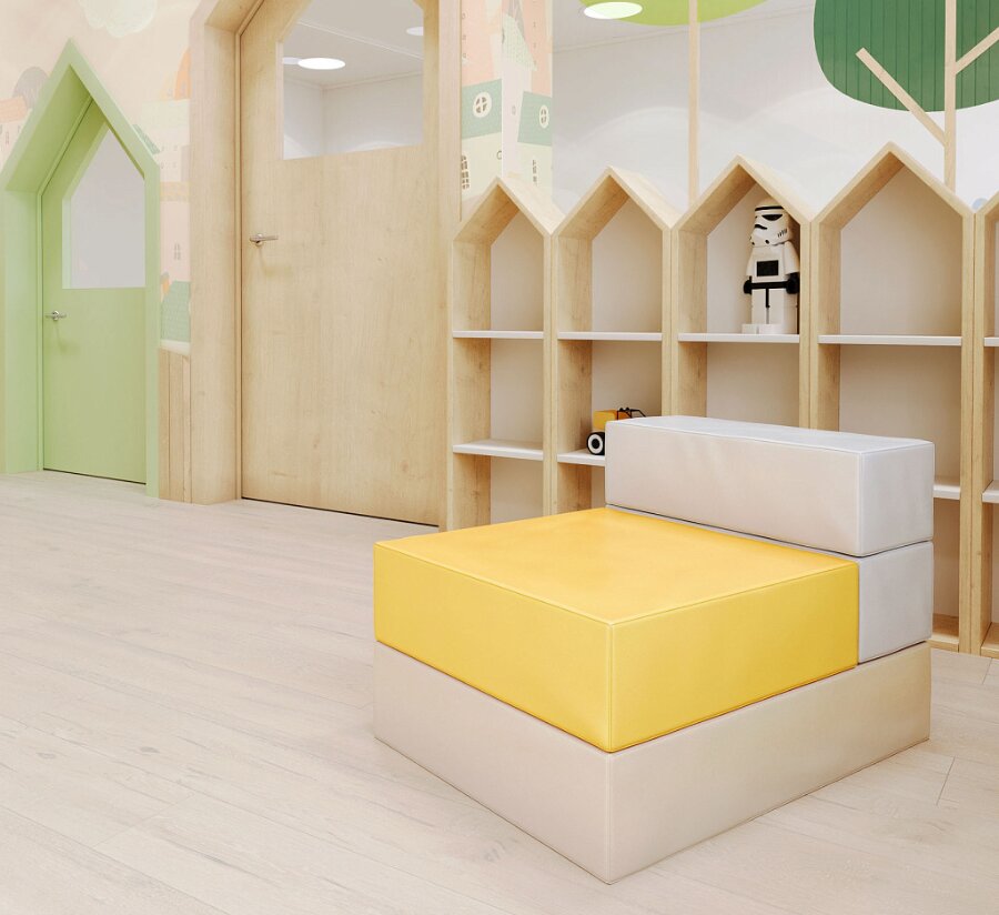 Набор мягких модулей Кресло раскладное состоит из четырех разноцветных деталей, из которых можно создать разнообразные кресла и диванчики для отдыха, а также множество прочих игровых конструкций. Использовать набор можно как в комнате ребенка, так и для организации игровых комнат в детских дошкольных учреждениях и развивающих центрах. Пастельная цветовая гамма будет смотреться уместно в любом учреждении!