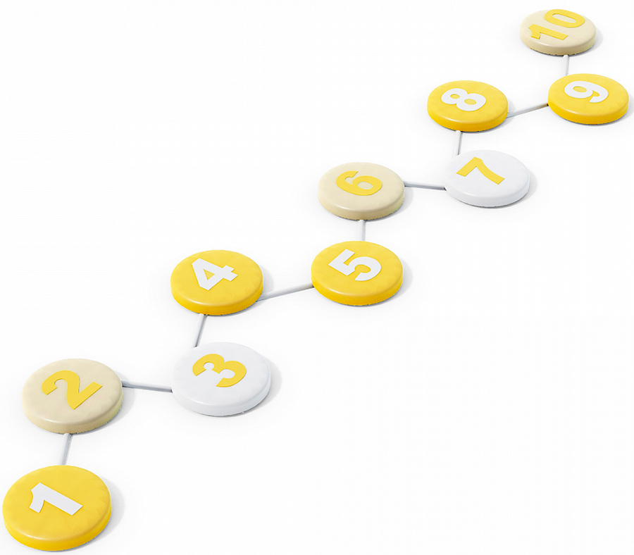 - 10 мягких круглых форм соединены между собой лентой