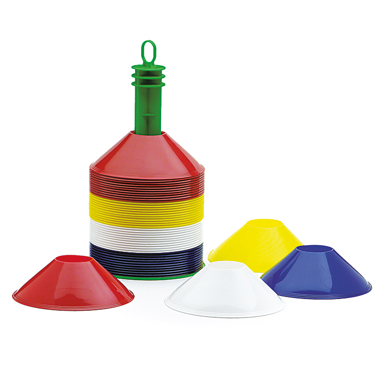 Набор фишек - это «колпачки» для разметки спортивной площадки или игрового поля, с целью ограничения игрового пространства. Используется на занятиях физической культурой как в спортивном зале, так и на улице. Разметчик поможет в организации эстафет и активных игр. Его можно использовать в тренировочном процессе в различных видах спорта, например, в футболе или баскетболе, для ведения мяча «змейкой», обозначение «ворот» и прочее.