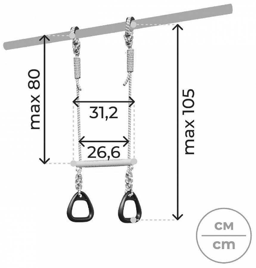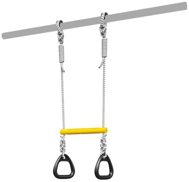 Спортивный снаряд Кольца с перекладиной позволит усовершенствовать спортивный комплекс. Это два спортивно-игровых снаряда в одном, ребенок сможет выбрать себе упражнение по вкусу.