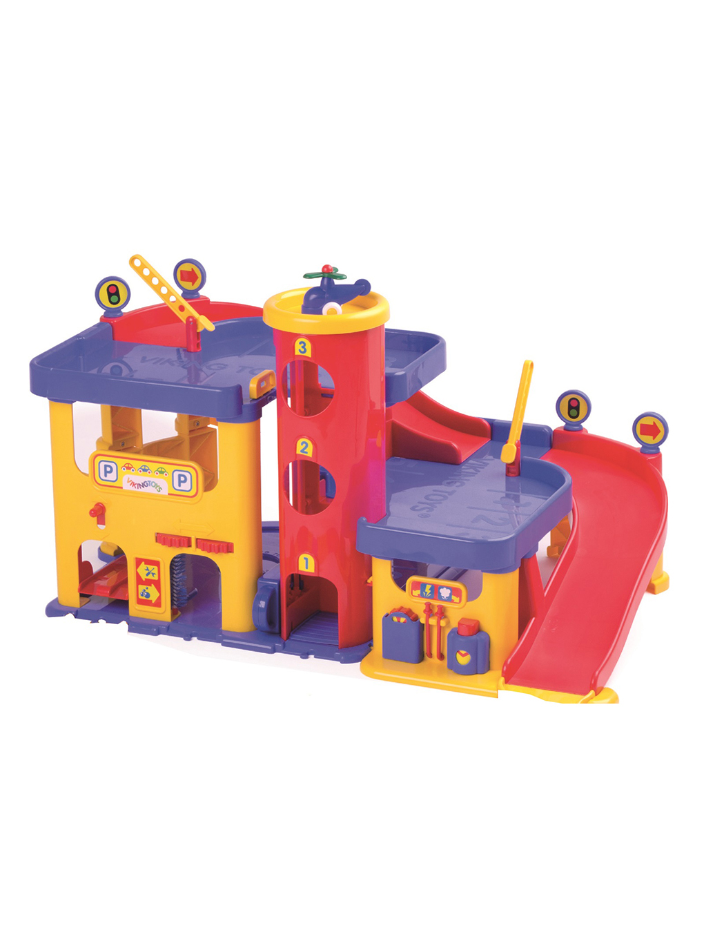 Прочный гараж Viking City с закругленными формами выдерживает нагрузку до 100кг! Интересные функции для увлекательной игры: эстакада, лифт, шлагбаумы, мойка, СТО, заправка. Без дороги, фигурок и машинок.