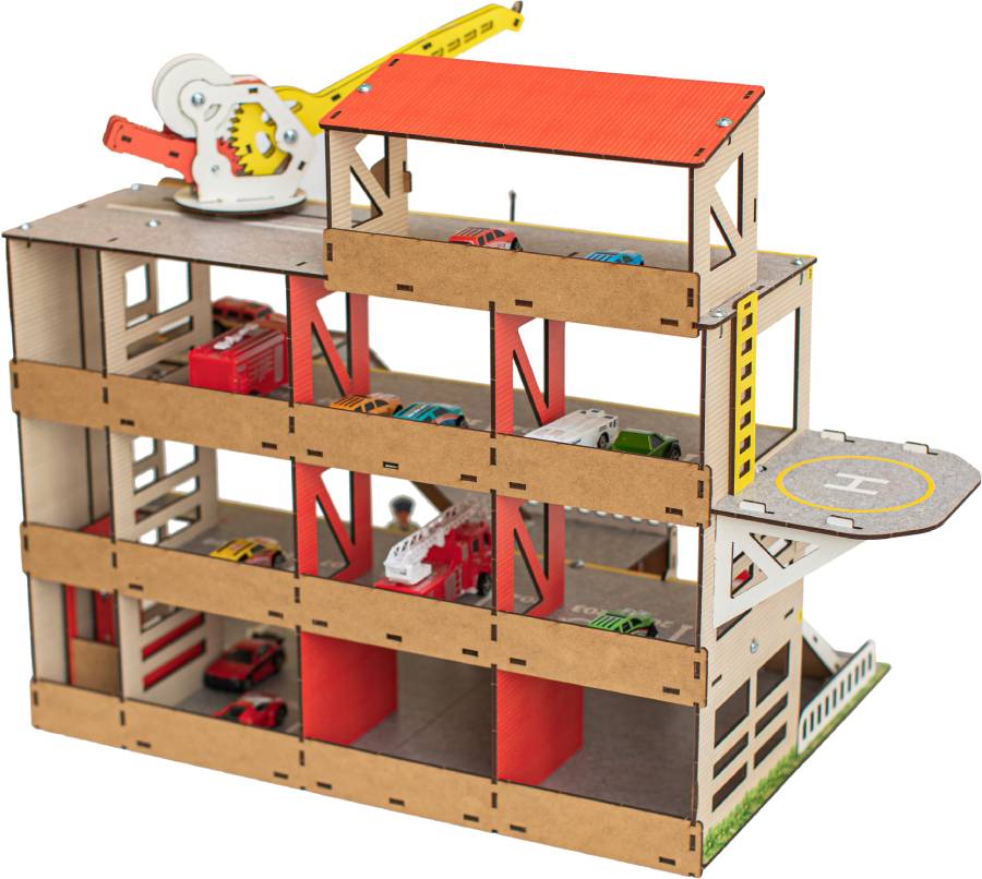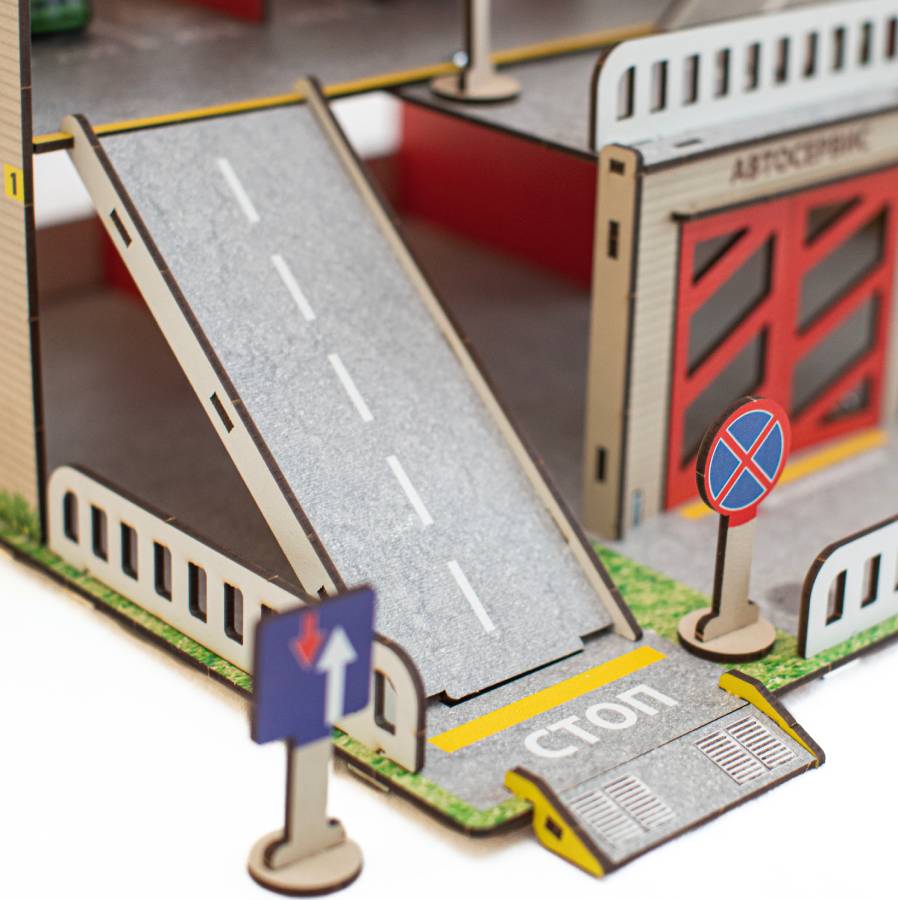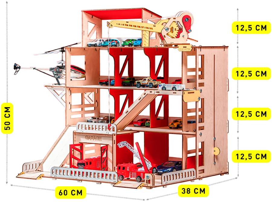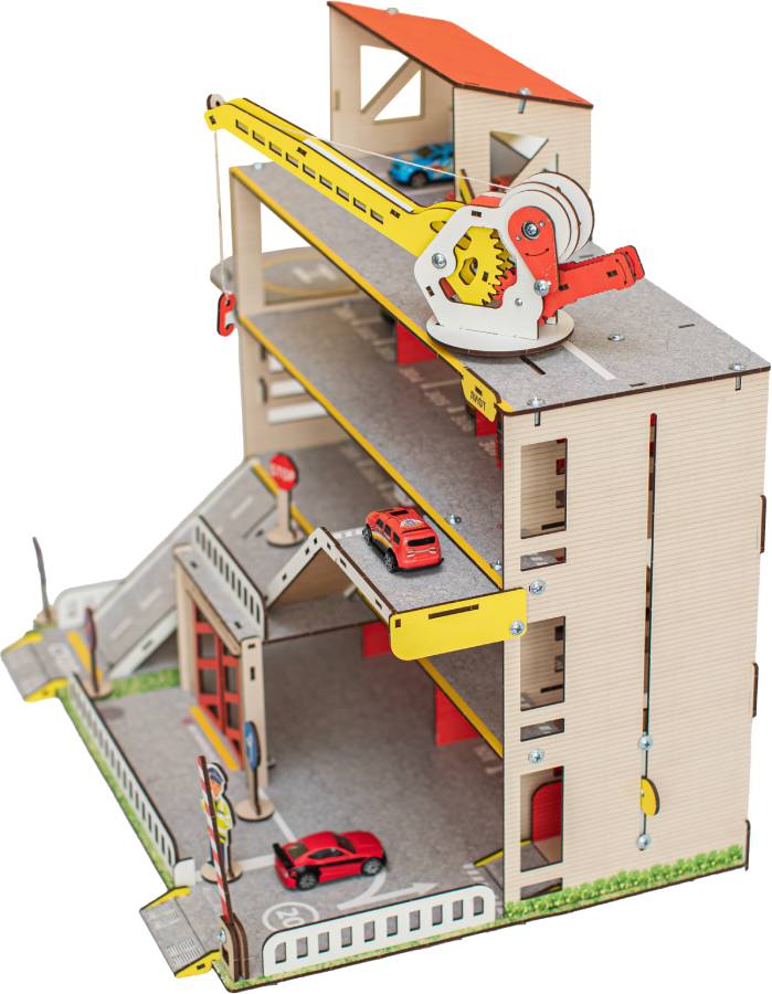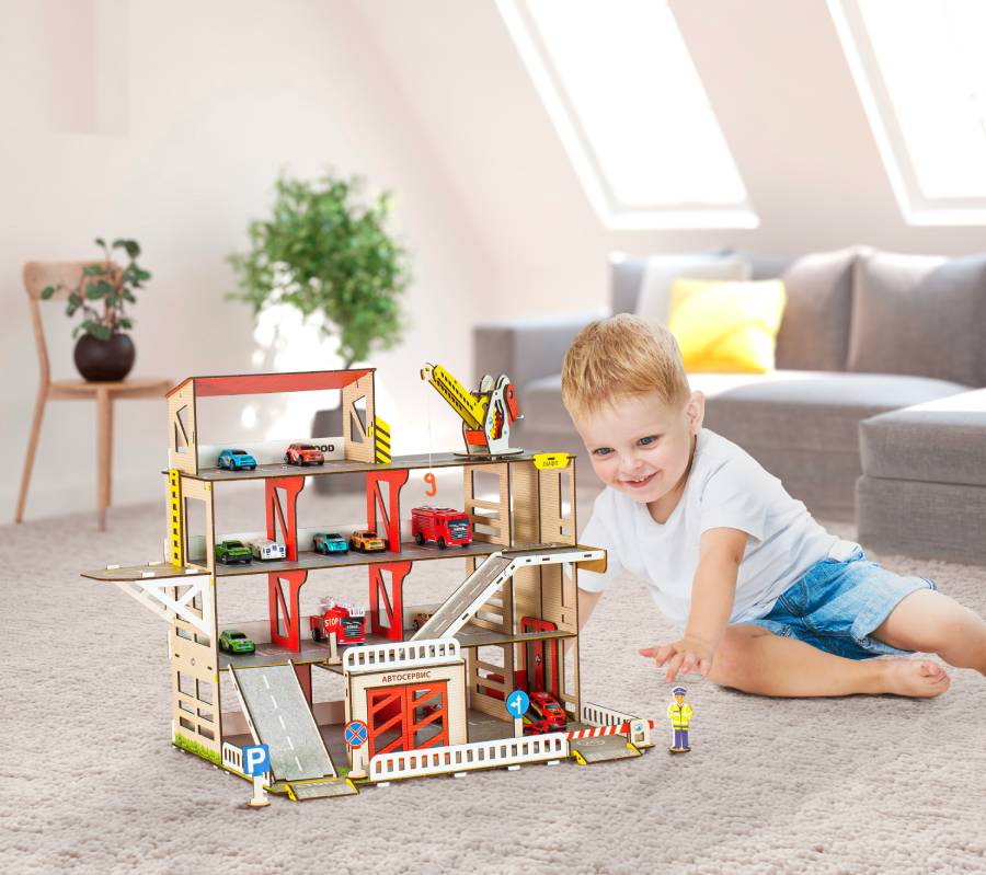 Паркинг - неотъемлемый атрибут юного коллекционера автомобилей. Паркинг имеет 4 этажа, 2 пандуса и вертолётную площадку. Для удобства перемещения машинок предусмотрен лифт, который фиксируется в любом положении. На первом этаже есть шлагбаум и большой гараж с распашными воротами. Кран полностью функционален: он может перемещаться по этажу, поворачиваться, поднимать стрелу и натягивать трос с крюком, для чего предусмотрена удобная ручка. Игрушка выполнена из настоящей древесины и покрыта красками на водной основе. Материал Дерево (Берёза) Возраст 3+ Страна производитель Россия Гарантия 1 год Сертификат безопасности RU № 0727871 Высота этажа 15 см Цветовая гамма Яркая Размер в собранном виде (см) 60х50х40 Особенности Функциональный кран, лифт, шлагбаум Количество этажей 4 Количество деталей 140 Вес упаковки 3 кг Размеры упаковки (см) 65х25х4