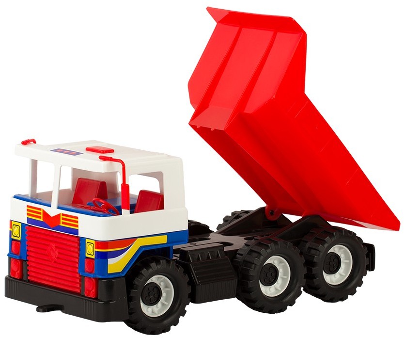 Игрушка Автомобиль-самосвал карьерный – пластмассовая игрушка, которую можно использовать как на улице, так и в доме. Пластмассовая машинка с кузовом, в котором можно перевозить различные игрушки, песок. Кузов машины откидывается, как у настоящего самосвала. Машина оснащена 3 осями (3 пары колес). Игрушка изготовлена из высококачественных материалов. Изделие проверено на соответствие требованиям технических регламентов Таможенного Союза и имеет сертификацию ЕАС