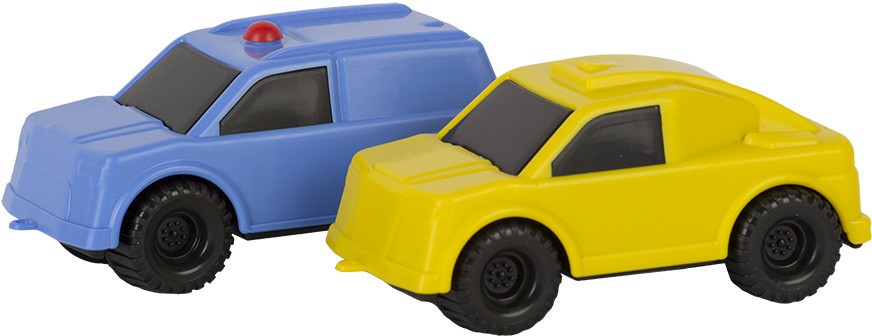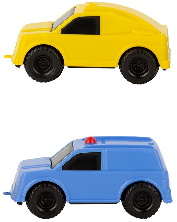 Комплект из 2 пластмассовых машинок. Характеризуется небольшим размером и весом. Подходит для сюжетно-ролевых игр, развивает моторику и воображение. Игрушка изготовлена из высококачественных материалов. Изделие проверено на соответствие требованиям технических регламентов Таможенного Союза и имеет сертификацию ЕАС.