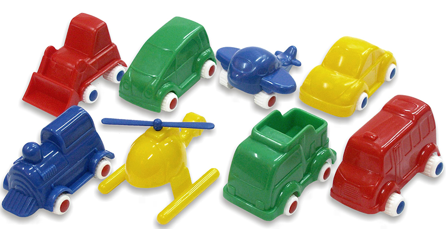 В комплекте 9 транспортных средств: вертолет, самолет, автобус, микроавтобус, трактор, грузовик, автомобиль, паровоз, кораблик. Фигурки изготовлены из разноцветной пластмассы. Длина каждой около 9 см. Набор упакован в пластиковую банку с крышкой. Рекомендованный возраст от 18 месяцев. Отличный учебный ресурс для стимулирования обучения, связанного с физической и социальной средой. Изготовлен из гибкого прочного пластика с несъемными безопасными колесами. Многоразовые контейнеры. Все с бесшумными колесами.