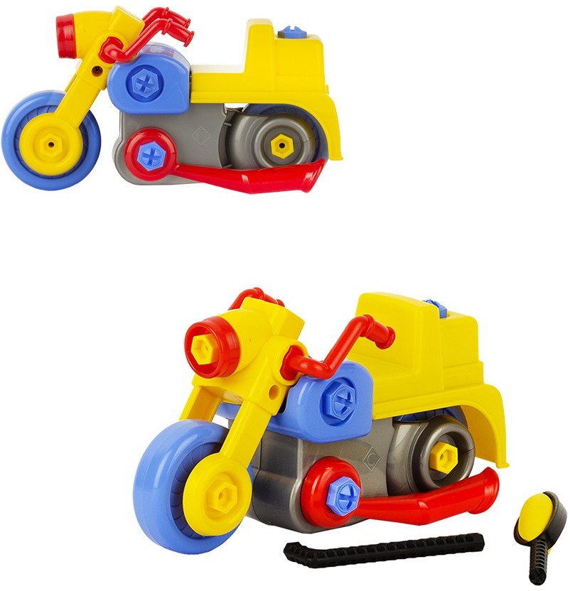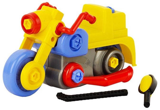 Игрушка «Мотоцикл» состоит из 26 деталей в комплекте отвертка и шестигранник. Разноцветные детали можно использовать для знакомства ребёнка с цветами. Собирая и разбирая игрушку, ребёнок тренирует мелкую моторику, учится обращаться с инструментами. Игрушка изготовлена из высококачественных материалов. Изделие проверено на соответствие требованиям технических регламентов Таможенного Союза и имеет сертификацию ЕАС