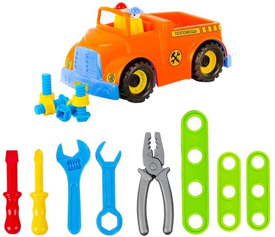 Автомобиль Техническая помощь и полный набор необходимых инструментов для маленького техника создадут увлекательную атмосферу игры