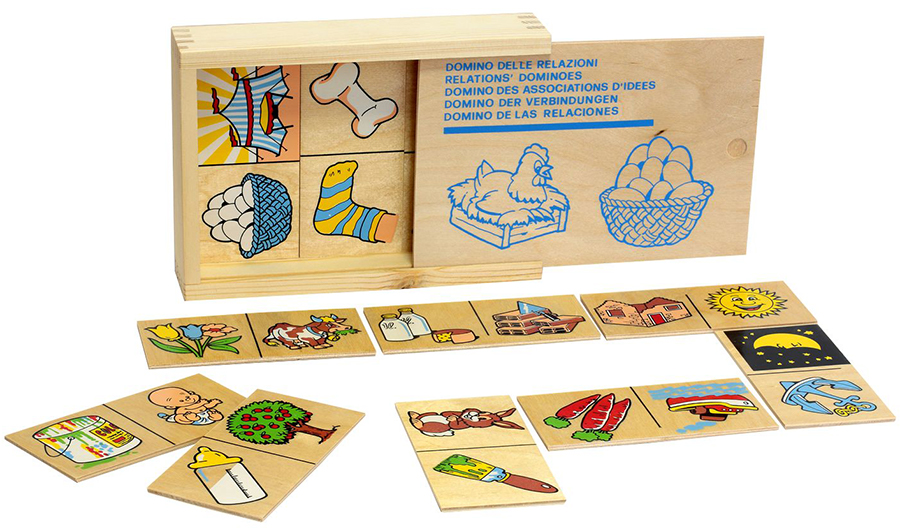 Развивающее игровое пособие-домино представляет собой карточки, на которых расположены по 2 красочные картинки. Карточки домино подбираются друг к другу на основе определенных ассоциативных связей. Помогите малышу понять принцип, по которому карточки соединяются между собой, например: к облаку нужно подбирать картинку с зонтиком, потому что из облаков идет дождь, рядом с рукой следует положить картинку с перчаткой. Когда ребенок научится составлять ассоциативные цепочки, предложите ему сочинить историю о том, что получилось. Домино помогает развитию ассоциативного и причинно-следственного мышления, образной памяти и связной речи. Играя с друзьями, ваш малыш будет творить в атмосфере состязательности и азарта.