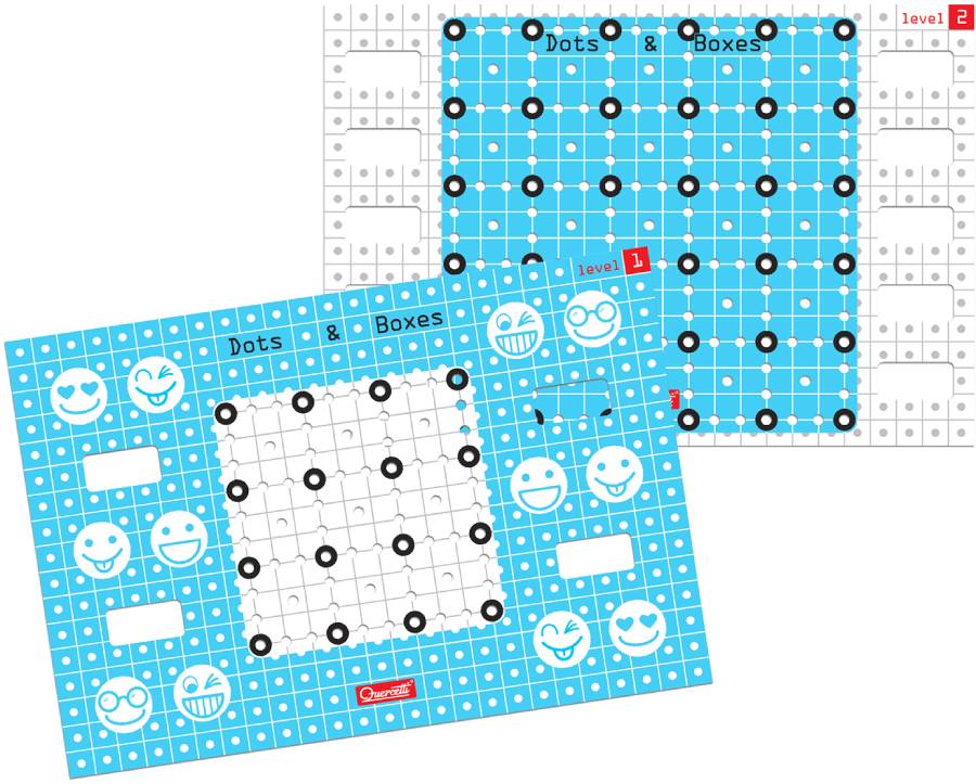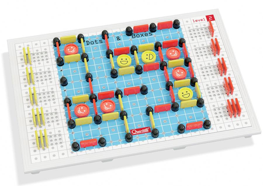Dots & Boxes - это стратегическая настольная игра для 2 игроков с несколькими уровнями сложности в зависимости от возраста игроков. Черные колышки должны быть расположены на перфорированной доске, чтобы начать игру. По очереди каждый игрок соединяет их со стеной своего цвета, создавая "ограждения" или квадраты. Побеждает тот, кто сможет закрыть наибольшее количество квадратов и пометить их цветом. Настольная игра "Палочки" от Quercetti - это настольная игра для 2-х человек. На лотке вы увидите голубой квадрат - это ваше игровое поле. Ходы делаются по очереди. Ход заключается в следующем: участник устанавливает по сторонам клеток внутри игрового поля стенку. На этом ход заканчивается и передаётся следующему участнику в случае, если в результате хода не образовался из ранее отмеченных стенок или границ игрового поля квадрат 1х1. В случае, когда такой квадрат образуется, участник ставит в него свой символ (жёлтый или красный смайлик) и получает призовой ход (который обязан использовать). Когда всё игровое поле заполнено, то есть не осталось ни одного пустого квадрата и ни одной стенки, игра заканчивается. Начинается подсчёт очков, то есть символов в квадратах 1х1 каждого участника. Чем больше очков набрал человек, тем лучше, то есть выигрывает тот, у кого больше всех очков. Игра развивает мышление, логику и усидчивость. Материал: пластик Размер упаковки: 35 х 27 х 6 см Возраст: от 7 лет Страна происхождения бренда: Италия
