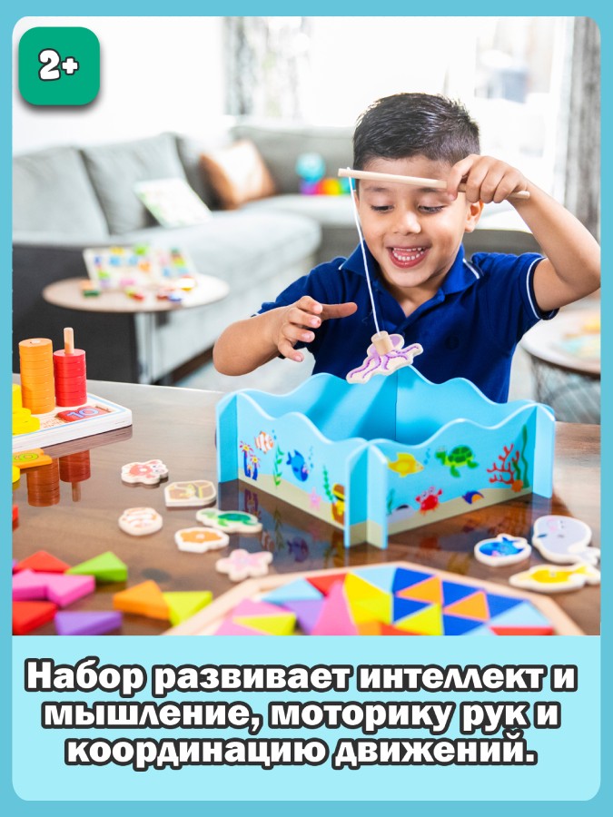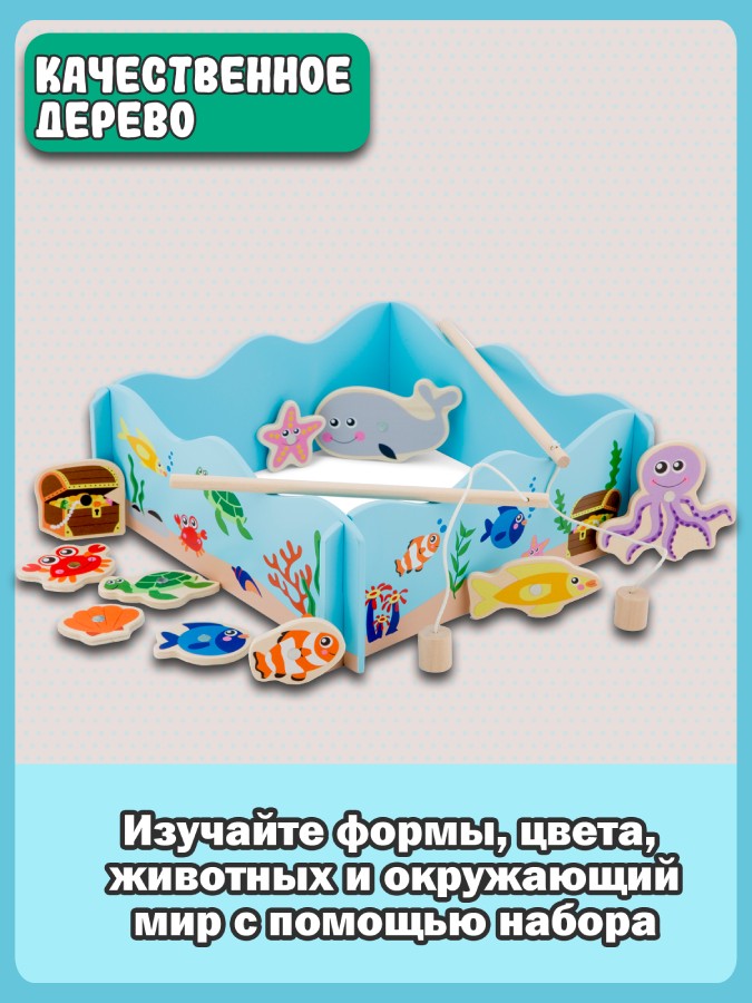 Яркая игра на удочку для одного или двух юных рыбаков – это улов дня. Используйте два магнитных стержня, чтобы узнать, кто поймает больше! Всего есть 10 разных персонажей, включая разных рыб, крабов и сундук с сокровищами, который вы можете поймать. Помогает развивать ловкость и координацию. Изготовлено из дерева. Товар сертифицирован, прошел проверки и полностью безопасен для игры, рекомендуется для детей от 2-х лет. Яркая игра на удочку для одного или двух юных рыбаков – это улов дня. Используйте два магнитных стержня, чтобы узнать, кто поймает больше! Всего есть 10 разных персонажей, включая разных рыб, крабов и сундук с сокровищами, который вы можете поймать. Помогает развивать ловкость и координацию. Этот набор входит в линейку продуктов New Classic Toys «Образовательные». Сборка, укладка, сортировка и подсчет