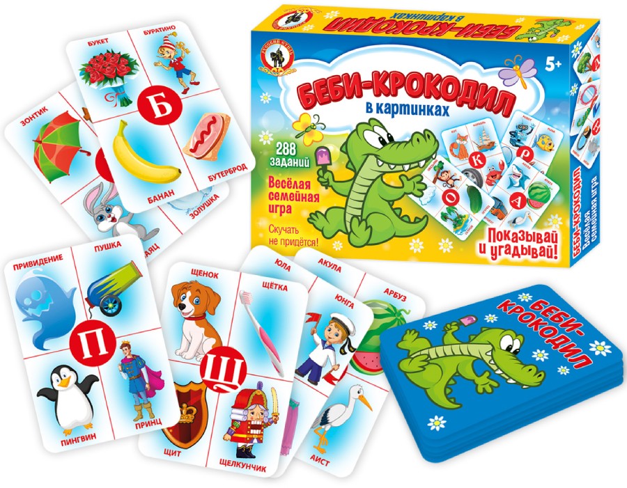 Этот вариант игры создан специально для самых маленьких игроков. Слова на карточках изображены в виде картинок, что позволит принять участие в игре малышам, которые ещё не умеют читать. Помимо картинок на карточке изображена буква русского алфавита, на которую начинаются все изображенные слова, поэтому дети легко и непринужденно смогут познакомиться с алфавитом. Изображая слова жестами, малыши развивают воображение и логику. Игра получится невероятно весёлой и очень интересной! Карточки – 72 шт., правила.