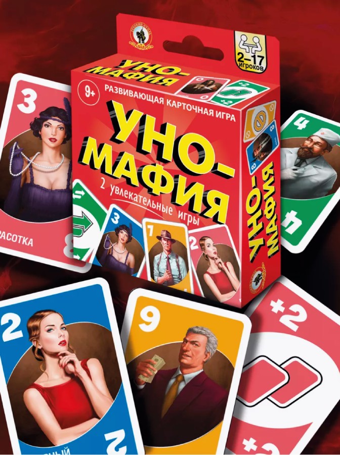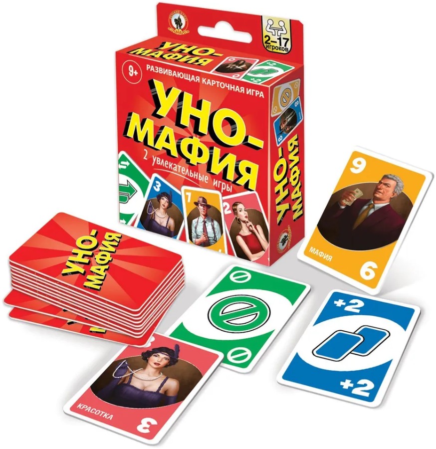 Набор из двух культовых карточных игр Уно и Мафия Ночное безмолвие порадует как новичков, так и опытных игроков в настольные игры.