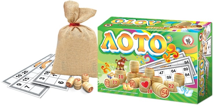 Старинная азартная игра с деревянными бочонками. Благодаря простым правилам игра завоевала большую популярность и встала в один ряд с такими развлечениями для большой компании, как домино и карты. Игра для детей от 6 лет. Состав игры: • Игровые карточки – 24 шт. • Бочата с числами – 90 шт. • Маркеры – 50 шт. • Мешок – 1 шт. • Правила игры