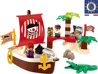 Конструктор для малыша СОКРОВИЩА ПИРАТОВ, из которого собирается пиратский корабль и разнообразные аксессуары.