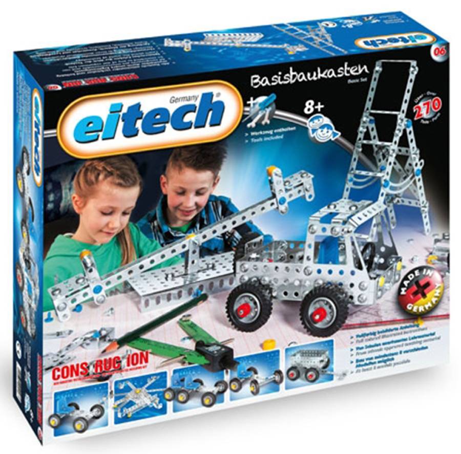 В наборе 270 деталей. Можно собрать 8 различных моделей. В комплект входят иллюстрированная интсрукция и инструменты. Конструкторы eitech оказывают позитивное воздействие на развитие ребенка: улучшают мелкую моторику, развивают логику и инженерные способности. Произведено в Германии, настоящее немецкое качество. Товар сертифицирован, прошел проверки и полностью безопасен для игры, рекомендутеся детям от 8-ми лет. Конструктор собирается в 8 моделей: грузовичок прицеп 3 вида автомобильной подвески карусель лестница качели Все детали легко соединяются с помощью гаек и винтиков, а подробная инструкция поможет разобраться в строительстве той или иной модели. В комплекте: 270 деталей инструменты для сборки инструкция Характеристики Материал: металл Размер упаковки: 25х15х30 см Вес: 1400 г Возраст: от 8 лет Страна происхождения бренда: Германия