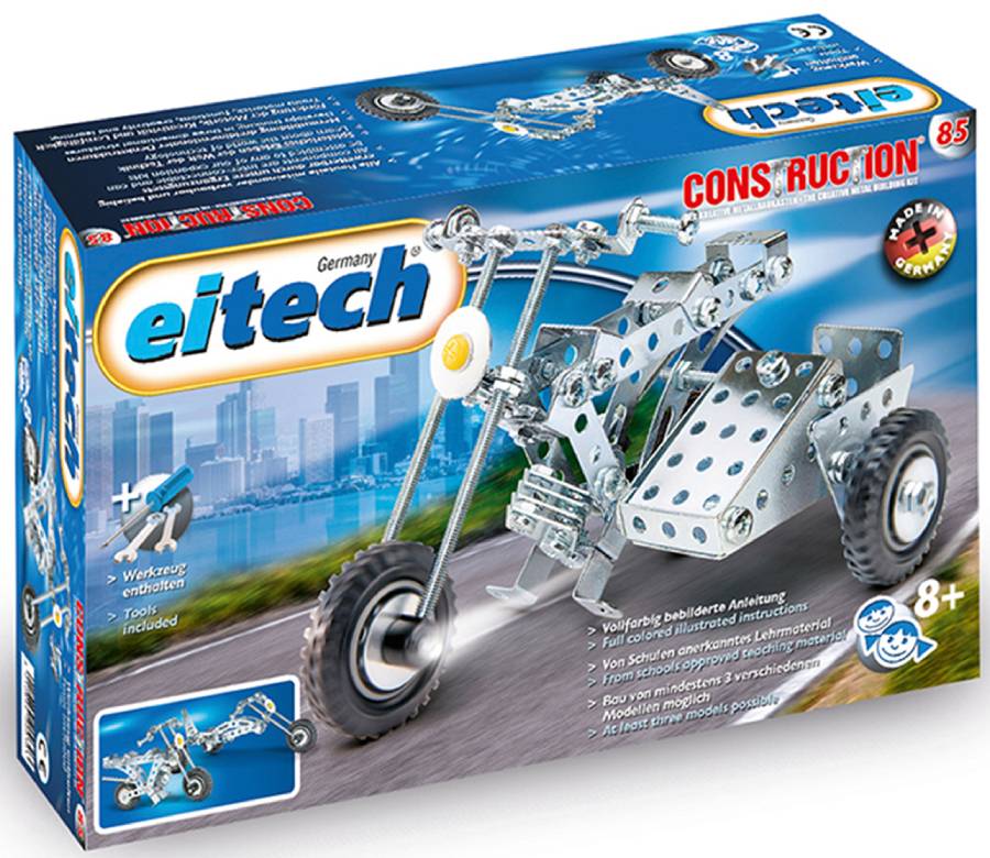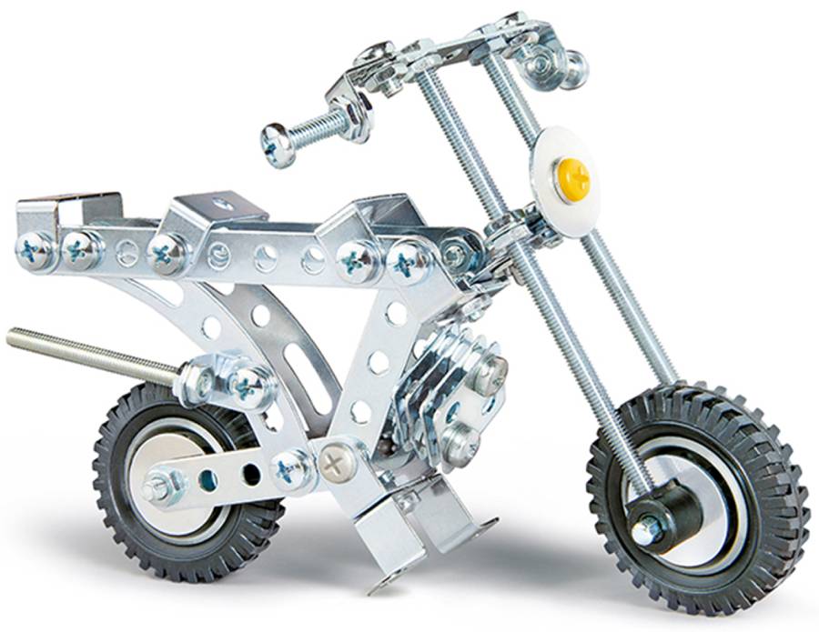 В набор входят 170 деталей, из которых можно собрать три различные модели мотоцикла. В комплект входят: шины, руль, иллюстрированная инструкция и инструменты. Конструкторы eitech оказывают позитивное воздействие на развитие ребенка: улучшают мелкую моторику, развивают логику и инженерные способности. Произведено в Германии, настоящее немецкое качество. Товар сертифицирован, прошел проверки и полностью безопасен для игры, рекомендутеся детям от 8-ми лет.