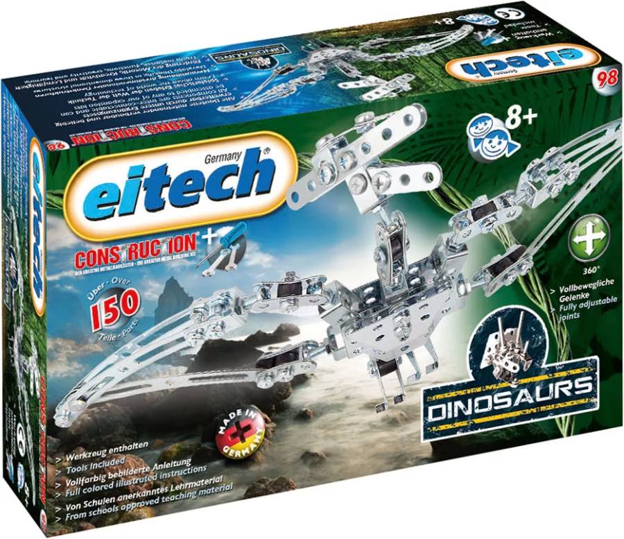 Осторожно, динозавры на свободе! Знакомьтесь, это один из самых больших друзей Eitech - Птеродактиль, которого можно собрать из 150 деталей. Этот доисторический набор отлично подходит для развлечения дома или занятий в школе. В комплект входят иллюстрированная инструкция и инструменты. Конструкторы eitech оказывают позитивное воздействие на развитие ребенка: улучшают мелкую моторику, развивают логику и инженерные способности. Произведено в Германии, настоящее немецкое качество. Товар сертифицирован, прошел проверки и полностью безопасен для игры, рекомендутеся детям от 8-ми лет. В собранном виде представляет собой вымершего летающего ящера - птеродактиля. Крылья модели могут двигаться. В комплекте идёт инструкция по сборке. В комплекте: 150 деталей инструменты для сборки инструкция Характеристики Материал: металл Размер упаковки: 34х7х16 см Вес: 454 г Возраст: от 8 лет Страна происхождения бренда: Германия