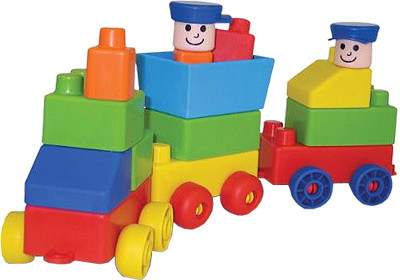 - деталей конструктора достаточно для постройки целого поездного состава - паровоза и двух вагонов, с двумя человечками