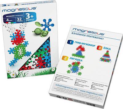 Из разноцветных снежинок ребенок сможет создать большое количество самых разнообразных фигур на плоскости - и по замыслу, и по готовой схеме, которая прилагается к комплекту. Снежинки очень просто скреплять друг с другом, поэтому малыш сможет играть с конструктором без помощи и присмотра взрослого. Снежинки ЗАЙЧИК, 32 элемента Magneticus № 13725 не содержат мелких деталей и не имеют острых углов, изделие абсолютно безопасно для самостоятельной игры ребенка дошкольного возраста. Ига способствует развитию мелкой моторики.