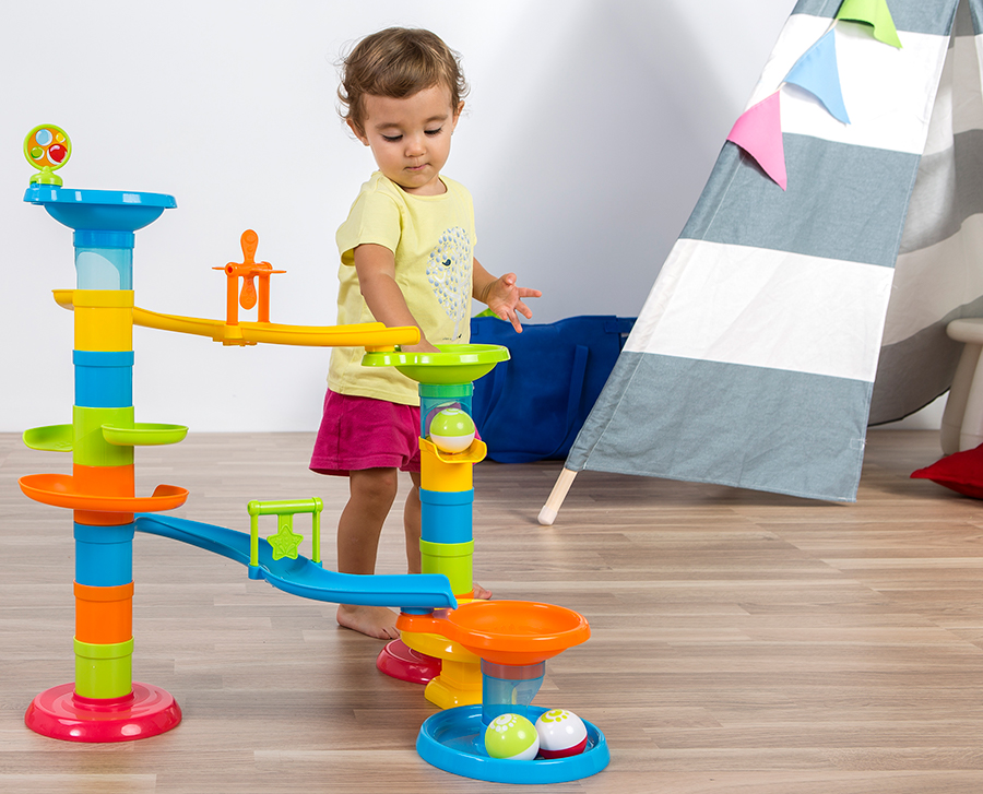 Невероятно увлекательная многоуровневая трасса с мячами: бросайте мячи, чтобы скользить по трассе, уклоняясь от препятствий, падать и отскакивать от батута, чтобы, наконец, попасть в корзину. Эта игрушка развивает моторику, пространственные представления и «причинно-следственное» понимание. В состав входит: 27 крупных элементов для построения пространственного трека, батут для шарика, 3 шарика . Высота собранной конструкции 54 см. Способствует развитию зрительно-моторной координации , пространственного мышления, навыков конструирования