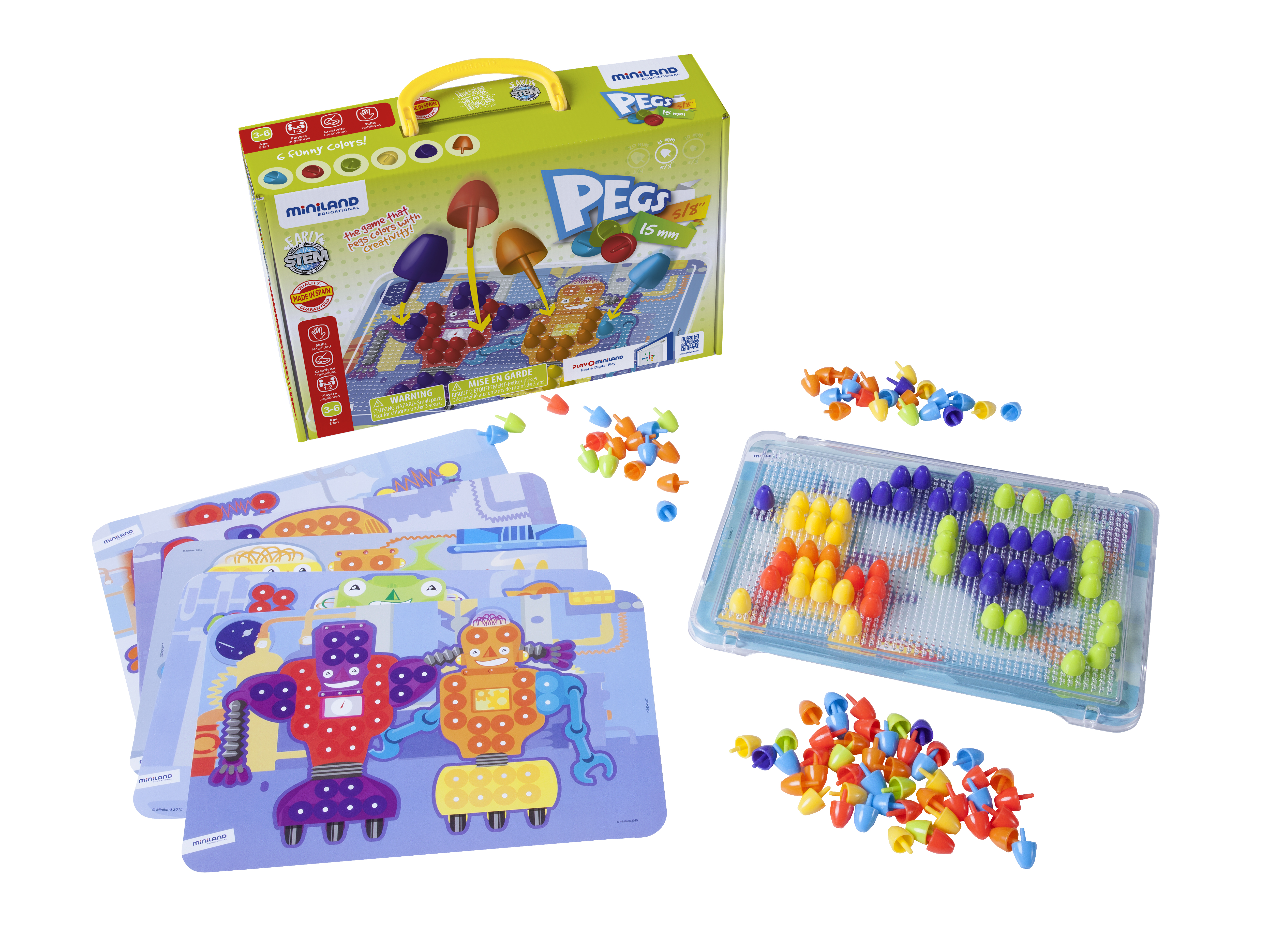 Мозаика, 15 мм. Особенностью этой мозаики является прозрачная основа, которая позволяет помещать под ней карточки-картинки и копировать их с помощью фишек. Ребенку дается полная свобода воображения - можно составлять мозаичные картины со своими картинками, или вообще без них. Игра в мозаику тренирует мелкую моторику рук, развивает воображение, художественный вкус и образное мышление. В процессе создания рисунка из мозаики малыш воспитывает целенаправленность деятельность, внимательность и наблюдательность. Ребенок учится согласованности движений, тренирует усидчивость, развивает абстрактное и пространственное мышление. Мозаика приучает работать по определенным правилам, образцу, стремиться довести замысел до видимого результата. А самых маленьких - знакомит с основными формами, цветами, развивая зрительное внимание и сенсорику. Детали изготовлены из экологически чистой пластмассы. В комплекте 150 фишек размером 15 мм, прозрачная основа с отверстиями размером 31x21 см и 6 картинок
