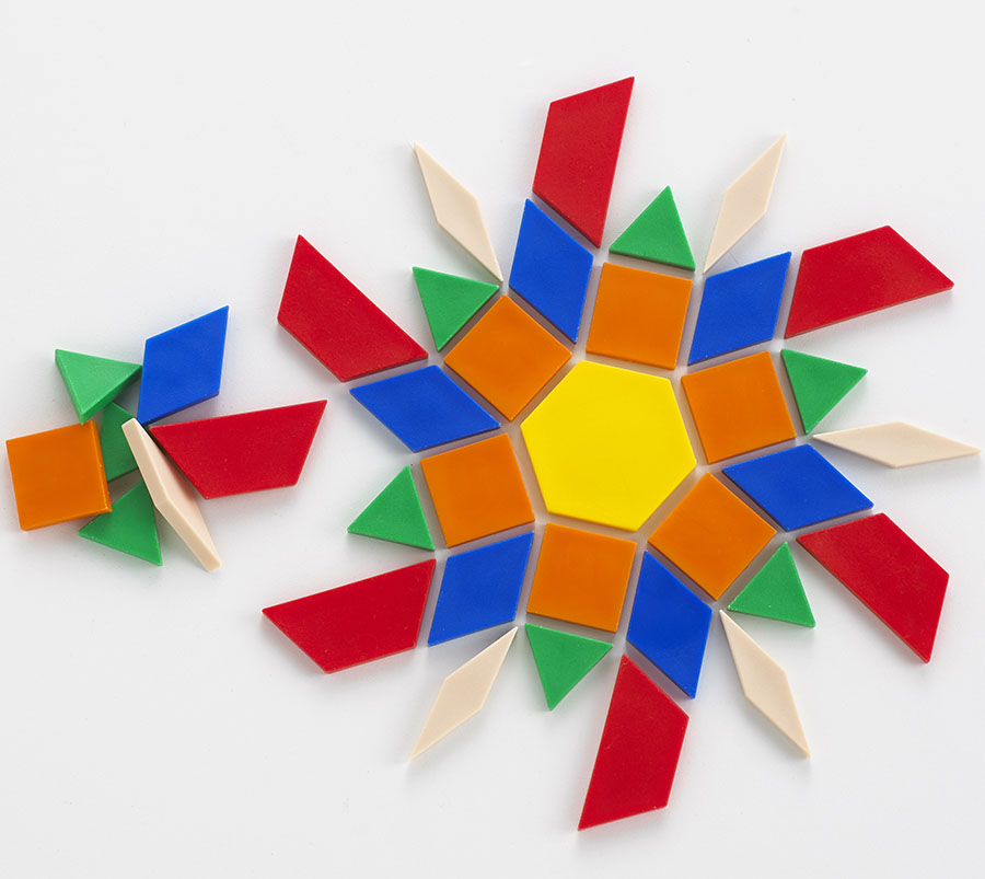 Учебно-игровое пособие Мозаика Геометрические фигуры помогает учить детей младшего дошкольного возраста самостоятельно распознавать геометрические фигуры по форме, цвету и величине и устанавливать равенство между двумя группами предметов. Развивать творческие способности при создании изображений из разноцветных шестиугольников, ромбов, квадратов, трапеций, треугольников.