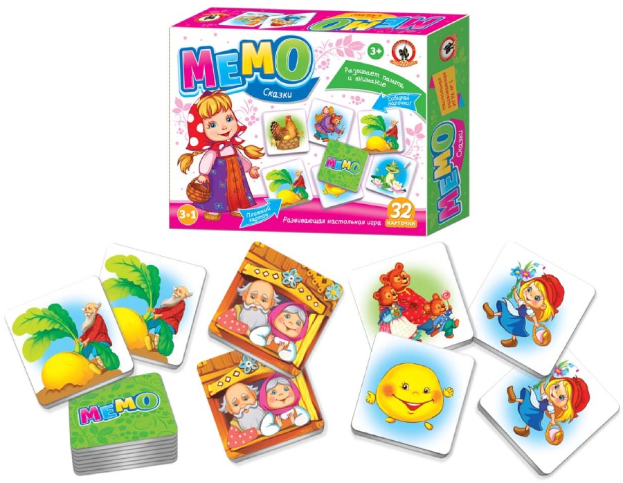 Интересная и очень полезная игра для детей. В нее с увлечением играют дети и взрослые, игра отлично развивает память и внимание. На карточках изображены герои любимых детских сказок. Малыши вспомнят, из какой сказки тот или иной персонаж, потренируют зрительную память и внимание. Карточки выполнены из толстого картона, их очень удобно брать в ручки даже самым маленьким игрокам. В правилах описаны несколько видов игр с карточками из данного набора. Проведите время весело, играя в эту увлекательную игру! В наборе 32 карточки и правила.