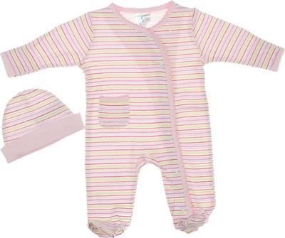 Комплект из двух предметов - комбинезончика с длинным рукавом и шапочки.