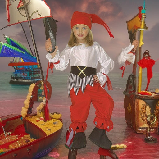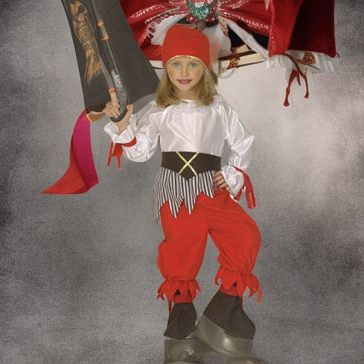 Наряд Пиратка, рост 116 Widmann № 8715 подойдет девочке дошкольного и младшего школьного возраста. Косюм состоит из белой кофты с поясом, красных шаровар и яркой пиратской банданы. Образ дополняет оригинальный пояс. Чтобы сделать образ еще более выразительным, можно дать девочке в руку игрушечный пистолет. Наряд на ребенка ростом 116 сантиметров подойдет для тематической вечеринки в пиратском стиле или для детского спектакля.