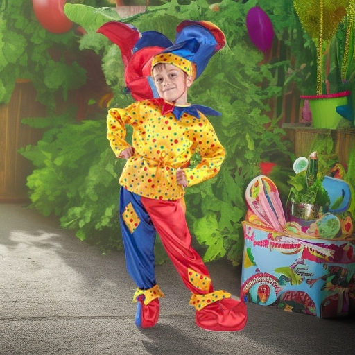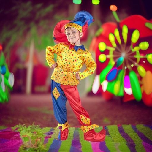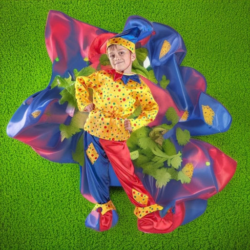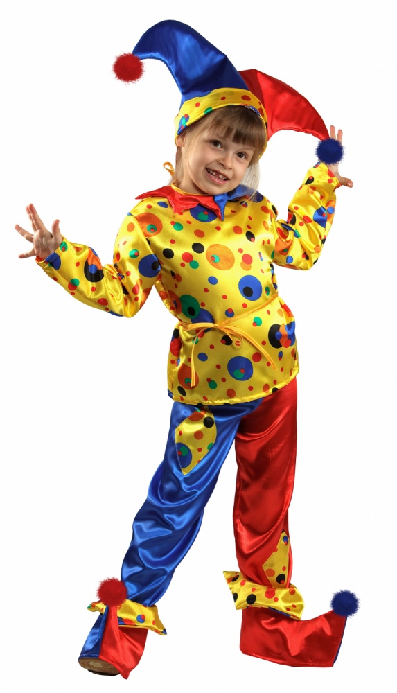 Веселый костюм из яркого и блестящего атласного материала из коллекции КАРНАВАЛЬНАЯ НОЧЬ.