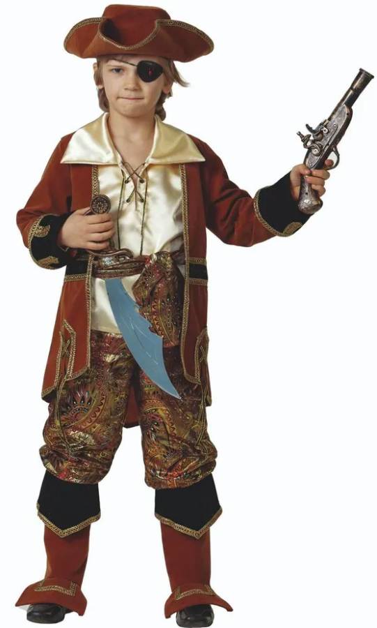 Карнавальный костюм КАПИТАН ПИРАТОВ для мальчика из коллекции КАРНАВАЛ-ПРЕМЬЕР дополнен полным набором аксессуаров для настоящего ПИРАТА.