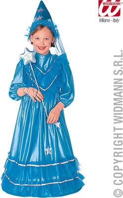 Наряд речной феи Фея голубая, рост 110 Widmann № 953 непременно понравится девочке, которая влюблена в морскую стихию. Романтичный ярко-голубой костюм с расклешенным платьем в пол и треугольным колпаком подойдет любой девочке, вне зависимости от ее фигуры. Изделие рассчитано на ребенка ростом 110 – 115 сантиметров, размер головного убора при необходимости можно регулировать. Костюм выполнен из прочной ткани, которая легко стирается и устойчива к загрязнениям.