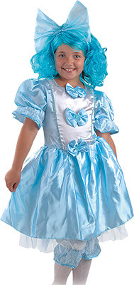 - голубой капроновый бант на резиночке (одевается поверх парика)
