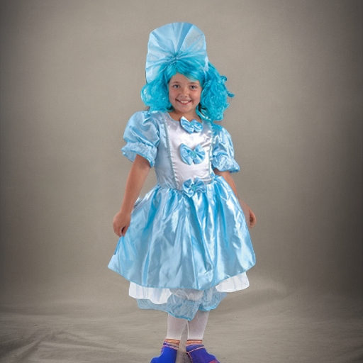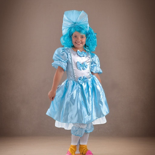 - голубой капроновый бант на резиночке (одевается поверх парика)