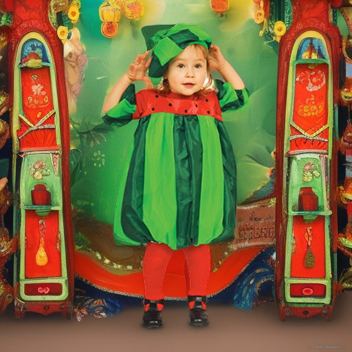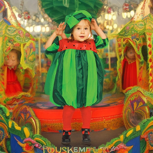 - спереди на красном фоне нашиты черные пластиковые "косточки" - зеленая полосатая шапочка