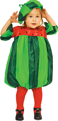 Костюм Арбуз, рост 116-122 Вестифика № 14503 станет отличным вариантом для осеннего или летнего детского праздника, главые герои которого – овощи и фрукты. Малыш в полосатом зеленом наряде и таком же берете непременно привлечет внимание взрослых и сверстников. Изделие имеет плотную подкладку и создается ощущение, что арбуз большой и спелый. Несмотря на это, костюм хорошо пропускает воздух, и ребенок в нем не вспотеет, даже если будет активно двигаться. Для того, чтобы дополнить образ, рекомендуется надеть красные штаны.