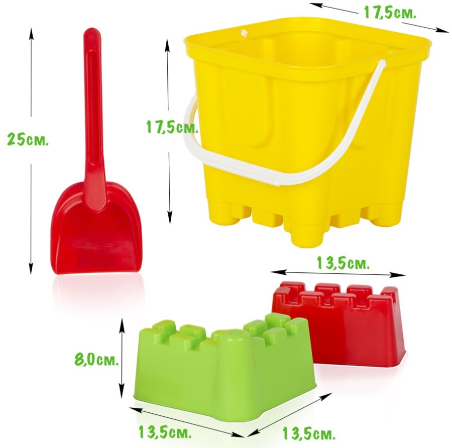 Состав: ведро «Крепость», совок L25см, формы для песка 2шт. Детский песочный набор предназначен для игр с песком и водой. Ведро в форме крепости и формочки в виде элементов крепости без труда позволят ребёнку построить сказочный замок. Благодаря играм с сыпучими материалами малыш будет развивать воображение, мелкую моторику рук и координацию движений, знакомиться с окружающим миром. Игрушка изготовлена из высококачественных материалов. Изделие проверено на соответствие требованиям технических регламентов Таможенного Союза и имеет сертификацию ЕАС
